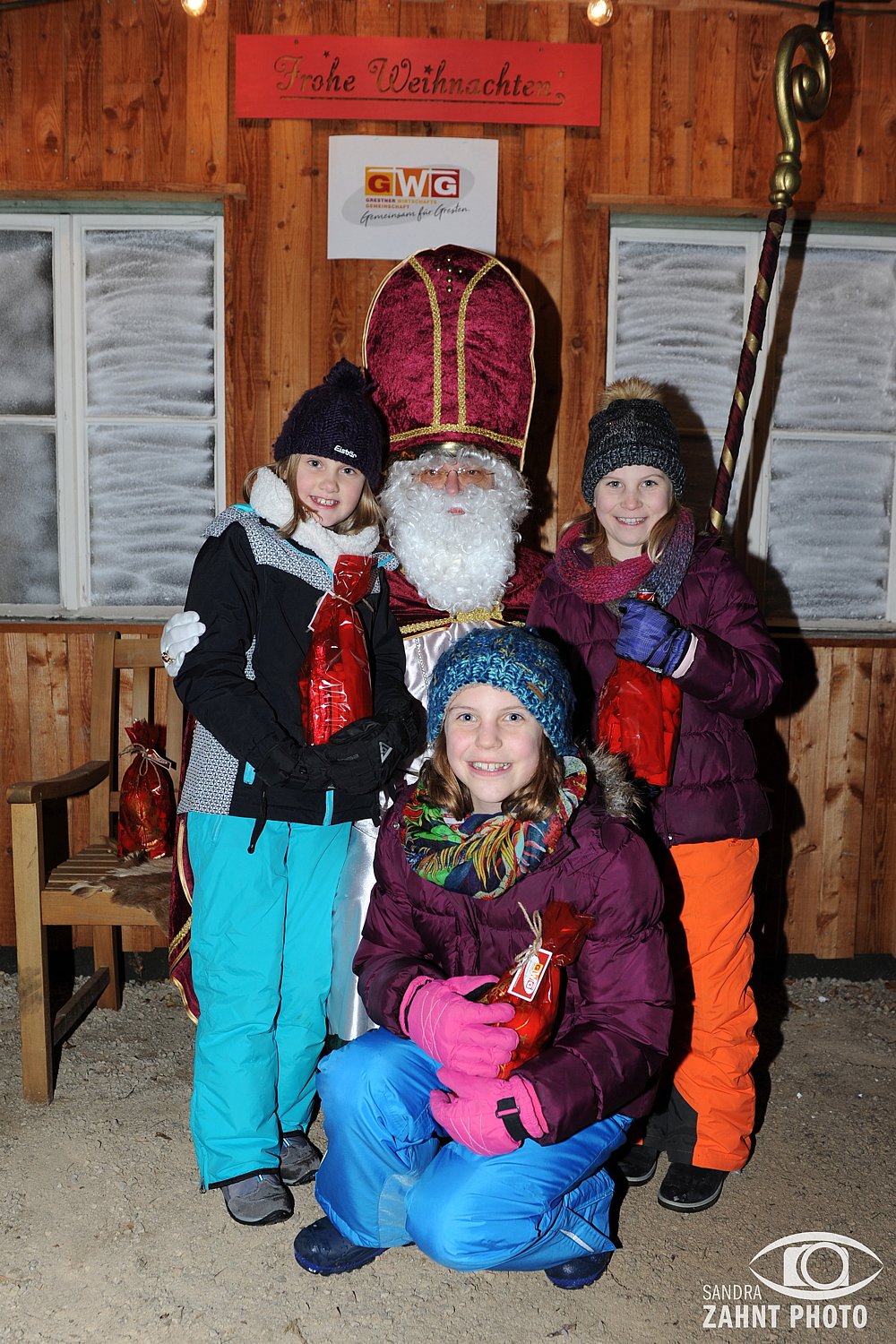Großer Andrang herrschte beim Besuch vom Nikolaus bei der „Gemütlichen Adventeinstimmung“ der Grestner Wirtschaftsgemeinschaft. Geduldig stellten sich die Kinder an und jedes Kind erhielt aus den Händen des Nikolaus ein Sackerl mit Geschenken der Grestner Wirtschaft. Fotocredit: Sandra Zahnt Photo